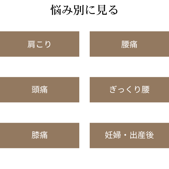 腰痛、肩こり、頭痛など様々な症状に対応できます。