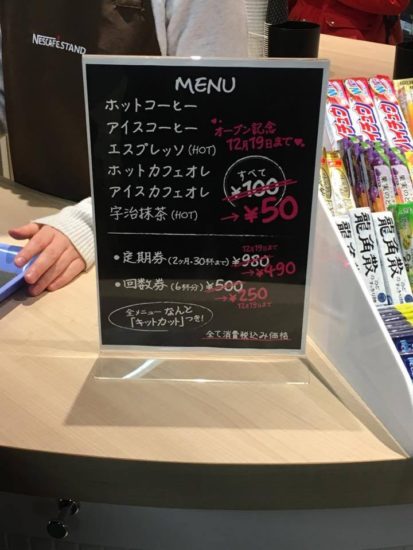 12月に阪急【高槻市駅】ホームにできたネスカフェ、便利で愛用しています。