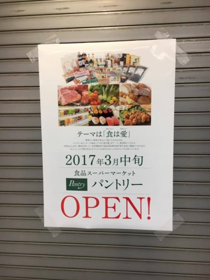 ホーム > 高槻 > JR高槻駅コンコース内には【食品スーパー】と【ドラッグストア】ができる様子です。 2017/02/13 2017/02/14 以前マツモトキヨシがあったJR高槻改札前ですが 【パントリー】っていう食品スーパが3月中旬にできるみたいです。隣にドラッグストア。 情報では新大阪駅にあるようで、珍しい食品や高級食材も置いてる食品スーパーのようですよ! 私のイメージでは【成城石井】の用な感じかなと思っていますが、 この立地にスーパーができると行き帰りに寄って帰れるので非常に便利になりそうですね(^^) - 高槻 Tweet Please enable JavaScript to view the comments powered by Google+. Loading Facebook Comments ... Please enable JavaScript to view the comments powered by Facebook. Message コメントをキャンセルメールアドレスが公開されることはありません。 ※ が付いている欄は必須項目ですコメント ※ 名前 ※ メール ※ サイト Δ このサイトはスパムを低減するために Akismet を使っています。コメントデータの処理方法の詳細はこちらをご覧ください。 関連記事 ゆるキャラグランプリ2015!高槻【はにたん】は・・・ 高槻に会議室付きのコンベンションホテル復活→高槻駅すぐそば そうか、今日は天神祭 塩ラーメンといえば【あす流】さん 成城石井OPEN@高槻松坂屋 高槻市駅前の【ジョフラン】さんが閉店 マツキヨOPEN@松坂屋 歳末ガラガラ大抽選会@高槻センター街 PREV 大雪予報は予報はどこえやら。 NEXT 16日(木)から西武高槻店でロハス