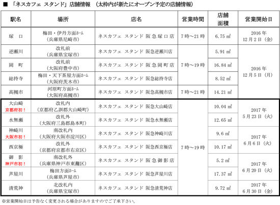 「ネスカフェ スタンド」の誕生以降、ご利用になる多くのお客様から、阪急沿線各駅への新規出店を望む お声をいただいたことを受けて、このたび新たに7駅でオープンします。阪急電鉄における「ネスカフェ スタンド」の店舗展開について