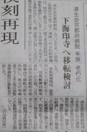 高槻のように大きな病院が沢山ない長岡京市、何かあったら済生会病院がキーワードです。
