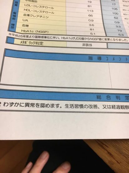 ホーム > つれづれ > 健康診断の結果が返ってきました! 2017/10/10 先月の長岡京市が行っている健康診断の結果が早くも返ってきました。もう一ヶ月か・・・。 今年も2年連続でコレステロールはOKでした。 赤血球は相変わらずですが要観察。その他異常なし。35歳健康とのことかな。 嫁さんも大きな問題なくてよかったよかった。 来年は夫婦で一度人間ドック受けるかな〜〜・・・。 と去年も言っていたような(;・∀・) - つれづれ Tweet Please enable JavaScript to view the comments powered by Google+. Loading Facebook Comments ... Please enable JavaScript to view the comments powered by Facebook. Message コメントをキャンセルメールアドレスが公開されることはありません。 ※ が付いている欄は必須項目ですコメント ※ 名前 ※ メール ※ サイト Δ このサイトはスパムを低減するために Akismet を使っています。コメントデータの処理方法の詳細はこちらをご覧ください。 関連記事 えっ?!クマ? 天王山を登山 京都独自大会・乙訓高校はブロック優勝 世間は 昨晩は暴風 これが軽? 冬至を満喫 中国沖のタンカー事故→日本海域に・・・。 PREV フットサルの大会に出てみました。 NEXT ハイチ戦からのメッシがハットトリックでアルゼンチンを救う!!