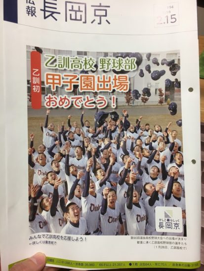 ホーム > つれづれ > 長岡京市の広報に。 2018/02/15 じゃ~ん! 長岡京市の広報に「乙訓高校・甲子園出場おめでとう」と!徐々に盛り上がってくるのでしょうかね。横断幕が二箇所ほど出てましたがもっと盛り上げていってほしいですね。 組み合わせ抽選会は3/16日 - つれづれ Tweet Please enable JavaScript to view the comments powered by Google+. Loading Facebook Comments ... Please enable JavaScript to view the comments powered by Facebook. Message コメントをキャンセルメールアドレスが公開されることはありません。 ※ が付いている欄は必須項目ですコメント ※ 名前 ※ メール ※ サイト Δ このサイトはスパムを低減するために Akismet を使っています。コメントデータの処理方法の詳細はこちらをご覧ください。 関連記事 すっちー&吉田!ドリルせんのかい!最近のマイブーム吉本新喜劇 よしよし うまいこと反れた! アクエリアス デイスタート 差し入れ はしか感染が心配 横断幕 大掃除をはじめないと PREV チョコレイト・ディスコ NEXT 開店挨拶って何処範囲まで?
