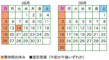 ホーム > みなと整体院 > 【みなと整体院】のお盆の営業案内です。 2018/08/09 2018/08/10 2018年08月の【みなと整体院】営業案内です。 ・お盆の営業案内です。 8/11(土)通常通りの営業 8/12(日)休み 8/13(月)通常通りの営業 8/14(火)休み 8/15(水)通常通りの営業 8/16(木)通常通りの営業 となっています。 よろしくお願いいたします。 - みなと整体院, 連絡事項 Tweet Please enable JavaScript to view the comments powered by Google+. Loading Facebook Comments ... Please enable JavaScript to view the comments powered by Facebook. Message コメントをキャンセルメールアドレスが公開されることはありません。 ※ が付いている欄は必須項目ですコメント ※ 名前 ※ メール ※ サイト Δ このサイトはスパムを低減するために Akismet を使っています。コメントデータの処理方法の詳細はこちらをご覧ください。 関連記事 年末年始の予定です! お盆の営業案内です@みなと整体院2022年 セミナーでした! 2024年度仕事始め 今日と明日は 第4弾【スクラム高槻】11月から使えます。 【みなと整体院】明日は通常通り営業しております! 明日はお休みです PREV アクトアモーレに【ゆうきパン2号店】8/7にOPEN NEXT 補修してくれたけど・・・。