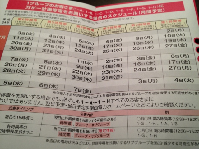 ホーム > つれづれ > 計画停電 2012/07/02 まいったな〜〜、こんなの届きましたよ。 みなさんのご家庭にも届いてるのかな??? まだしっかり説明読んでませんが、ホントにするのでしょうか??? 明日は我が身じゃないけど・・・。 去年は他人事のようだったことが・・・ね・・・。 患者さんは大丈夫でしょ!! って言われてましたが(^^) - つれづれ Tweet 関連記事 梅田北に新スタジアム? やべっちFCが終了とな・・・(T_T) うわさ ハロウィンー10月終わり 【MIX】放送開始!タッチの30年後 DASH島 もう一度BBQ 見つけた!アイス! PREV 東京行ってきました NEXT トマト育ってます みなと園芸3