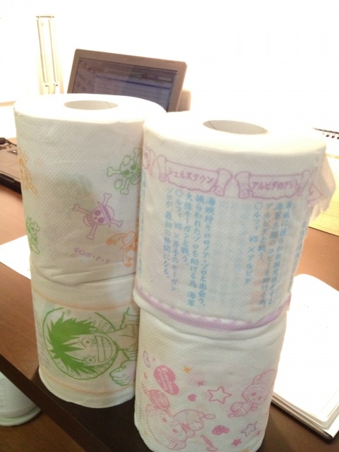 ホーム > いただき物☆ > これではフキフキできないな〜(笑) 2012/07/12 私のONEPIECE好きを知ってか、患者さんがトイレットペーパー下さいました。 4種類のペーパー 主人公ルフィー ウソップもいまっせ!すっごく綺麗にプリントされていてもったいなくて使えなさそうです(笑) Hさん有難うございました!!! - いただき物☆ Tweet 関連記事 宇治抹茶ぷりん 珍しいりんご 東京お土産! コッペパン専門店「ゆうきぱん」さん@高槻 銘菓【鶴乃子】 伽羅の香 中国は 桃の節句 PREV やっぱり女子だね NEXT 明日から祇園