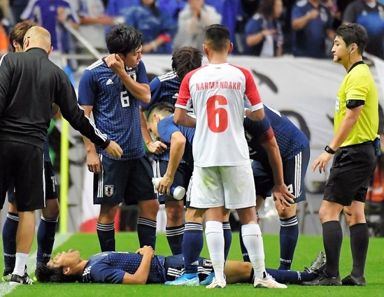 ホーム > サッカー > 対モンゴル(カタールワールドカップ予選) 2019/10/10 2019/10/11 6点も取っちゃったよ!! なのにDFの要・成長真っ只中の富安選手が終了間際に負傷離脱m(_ _)m しかもハムストリング・・・。 一番良くないパターンです。 【スコア】 日本代表 6-0 モンゴル代表 【得点者】 1-0 22分 南野拓実(日本) 2-0 28分 吉田麻也(日本) 3-0 33分 長友佑都(日本) 4-0 40分 永井謙佑(日本) 5-0 56分 遠藤航(日本) 6-0 82分 鎌田大地(日本) - サッカー Tweet Please enable JavaScript to view the comments powered by Google+. Loading Facebook Comments ... Please enable JavaScript to view the comments powered by Facebook. Message コメントをキャンセルメールアドレスが公開されることはありません。 ※ が付いている欄は必須項目ですコメント ※ 名前 ※ メール ※ サイト Δ このサイトはスパムを低減するために Akismet を使っています。コメントデータの処理方法の詳細はこちらをご覧ください。 関連記事 VS KOREA(AFC2011) さあ、開幕しました! ハリルジャパン代表初選出! 【日本代表】キルギスに快勝!! 引き分けで・・・終了〜〜。 【リオ五輪決勝】対韓国に逆転勝利! AFCーU23優勝だ! そろそろアジアカップの話を!神動画で振り返りながら。。。 日本代表を見に行ってきた。キリンチャレンジカップ グアテマラ戦 観戦レポ PREV バットマン vs スーパーマン【ロードショー】 NEXT 台風19号、明日は営業する予定ですが・・・。