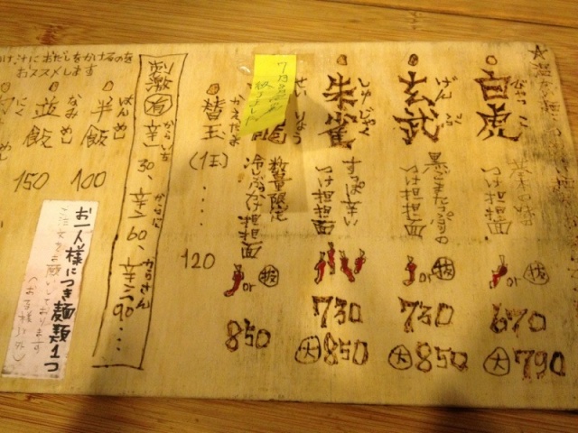 ホーム > つれづれ > 長岡噂の坦々麺 2012/09/23 食べログで長岡京市ダントツ一位ラーメン屋さん『風来坊』へ行ってきました すでに十人ほど並んでました、さすが人気店 メニューはこんな感じすべてつけ麺です。注文したのは白虎→つけ麺坦々麺なかなか美味しかったですよ。 でも私の中の高槻NO1八海山は超えれなかったな。 まーもともと坦々麺が好みじゃないからかも(笑) - つれづれ Tweet 関連記事 大阪へ 自宅のPCがぶっ壊れた。CPUって大事。 iPhoneのアップデートをしてから調子が悪い。 本田さんの行方 ユニクロ×アンダーカバー じいさんの言葉 知り合いさんが美容院をOPEN【LIFE’S】 1時間ほどで6.9キロ PREV 朝晩と・・・ NEXT 薪ストーブ