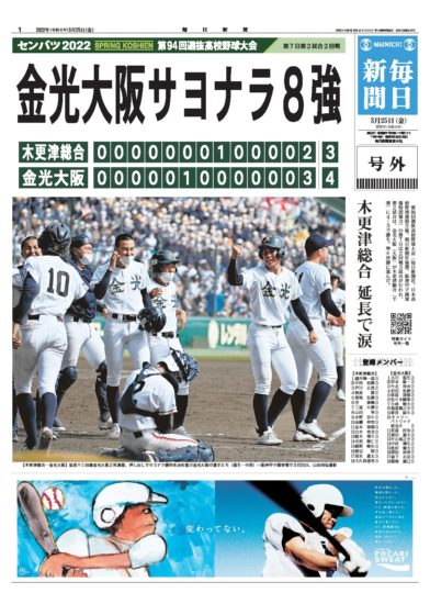 ホーム > 高校野球 > 金光高校が初のベスト8へ 2022/03/25 2022/03/26 高槻の金光高校が延長タイブレークをサヨナラで勝ってベスト8へ進出しましたね!! よく頑張ってくれました! まさかノーヒットで3点取るとは!! - 高校野球 Tweet Please enable JavaScript to view the comments powered by Google+. Loading Facebook Comments ... Please enable JavaScript to view the comments powered by Facebook. Message コメントをキャンセルメールアドレスが公開されることはありません。 ※ が付いている欄は必須項目ですコメント ※ 名前 ※ メール ※ サイト Δ このサイトはスパムを低減するために Akismet を使っています。コメントデータの処理方法の詳細はこちらをご覧ください。 関連記事 夏のフィナーレ 京都代表は公立高校の鳥羽校が甲子園へ やっとベスト8が出揃いましたね。 今年も甲子園に高校野球を見に行ってきました!! 今年は高校野球100周年 明日はお休みです^_^ 2023年夏は慶応が優勝@高校野球 第94回・選抜高校野球が開幕! PREV 花粉症には鼻うがい NEXT この試合は最高でした!