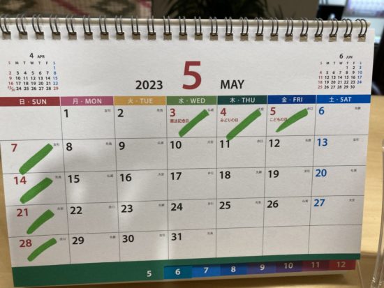 ホーム > つれづれ > GWの営業案内@みなと整体院 2023/04/29 今日から長い人は9連休みたいですね。 何処も人でいっぱいそうなのでどうしようかと考え中、時既に遅しw GWの営業案内です。 4/29日=営業 4/30日=休み 5/1~2日=営業 5/3~5日=休み 5/6日=営業 5/7日=休み - つれづれ, みなと整体院, 連絡事項 Tweet Please enable JavaScript to view the comments powered by Google+. Loading Facebook Comments ... Please enable JavaScript to view the comments powered by Facebook. Message コメントをキャンセルメールアドレスが公開されることはありません。 ※ が付いている欄は必須項目ですコメント ※ 名前 ※ メール ※ サイト Δ このサイトはスパムを低減するために Akismet を使っています。コメントデータの処理方法の詳細はこちらをご覧ください。 関連記事 フットサル♪ キングダムが面白い( ゚∀゚) お見舞金的な・・・いろいろ考えれるんですねm(__)m 終わった〜〜。 やっとオイル交換! 大阪万博2025が決定!! ご先祖参りへ@秋の京都 本日午前中のみ、明日はお休みですm(__)m PREV 鯉のぼりが出ていました。 NEXT 日吉ダムへ行ってきました。