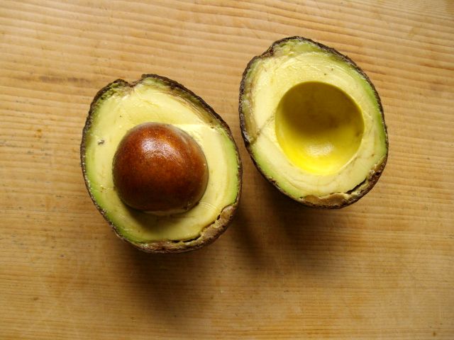 アボガドを食べて、種を取る