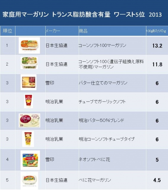 トランス脂肪酸含有量ワースト5位