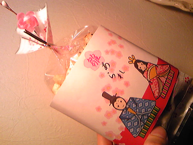 ホーム > いただき物☆ > 桃の節句 2010/03/03 雛あられをIさんから頂きました。千鳥屋の雛あられ 男♂の私は今日がひな祭りと言うことを忘れていました。 Iさんありがとうございます。 春はもうすぐそこですね。 - いただき物☆ Tweet 関連記事 わらび餅 創業120年京都老舗果物屋ヤオイソのフルーツサンド☆ お花いただきました(^_^) チョコレイト〜〜 ディズニーランドお土産! 【Puka Organics】10月にOPENするサンドイッチ屋さん 北海道土産 FUJIテレビ PREV ゆめみの里が閉鎖だと?! NEXT 大将軍のロウリュ