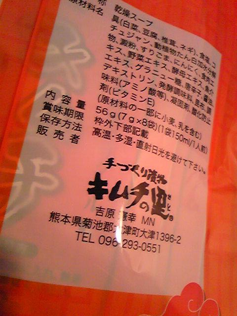 ホーム > つれづれ > 阿蘇の玄関キムチの里 2010/03/10 だいぶ前に熊本出身の最近やる気十分のM先生から頂いた【手作り漬物・キムチの里】のキムチスープこれがなかなか旨くて、お昼ごはんに頂いています。 どうやら熊本では有名なキムチのお店のようですね。 ありがとうございます!! - つれづれ Tweet 関連記事 音の万華鏡 はじめての『台湾まぜそば』 茨木市にまたイオンができるってよ! サーバーが 昨夜は・・・。 京都アートフリーマーケット 桜島噴火、ドラゴンヘッド ウォーキングも PREV 【たかつき子育て応援事業】に登録完了! NEXT はなさかじいさん