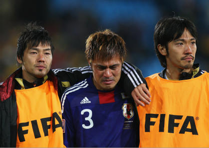 駒野と同世代の松井、阿部が肩を抱き寄せる涙