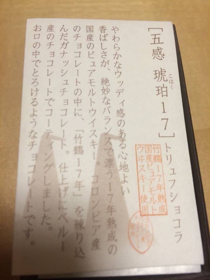 ホーム > つれづれ > まっさんチョコこと竹鶴チョコ 2015/02/09 2015/02/10 GOKANさんから出しているウイスキー【竹鶴】いりのチョコ チョコに竹鶴17年をねりこんで仕上げてくれています。 トリュフ的な! マッサンにハマっている私を見かねて 嫁さんが買ってきてくれました。 サントリーの山崎バージョンもあるらしいですが、結構高いみたいで お求めやすい竹鶴さんバージョンをくれました(笑) アルコールに弱い私でもウイスキーの香りが楽しめる出来栄えで 美味しくいただきました! - つれづれ Tweet Please enable JavaScript to view the comments powered by Google+. Loading Facebook Comments ... Please enable JavaScript to view the comments powered by Facebook. Message コメントをキャンセルメールアドレスが公開されることはありません。 ※ が付いている欄は必須項目ですコメント ※ 名前 ※ メール ※ サイト Δ このサイトはスパムを低減するために Akismet を使っています。コメントデータの処理方法の詳細はこちらをご覧ください。 関連記事 長岡の光明寺 知っておきましょう 新型シエンタは明日7月9日発表? 唯一のお盆休み アメリカでマーガリン禁止に! 今年も甲子園に高校野球を見に行ってきました!! ついに我が家にもマイナンバー 模様替え PREV 映画【アンストッパブル】見ました。 NEXT 明日11日(祝)は通常通り営業しています。