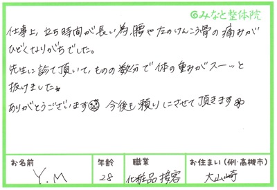 すぐにカラダも軽くなって帰ってもらえました。