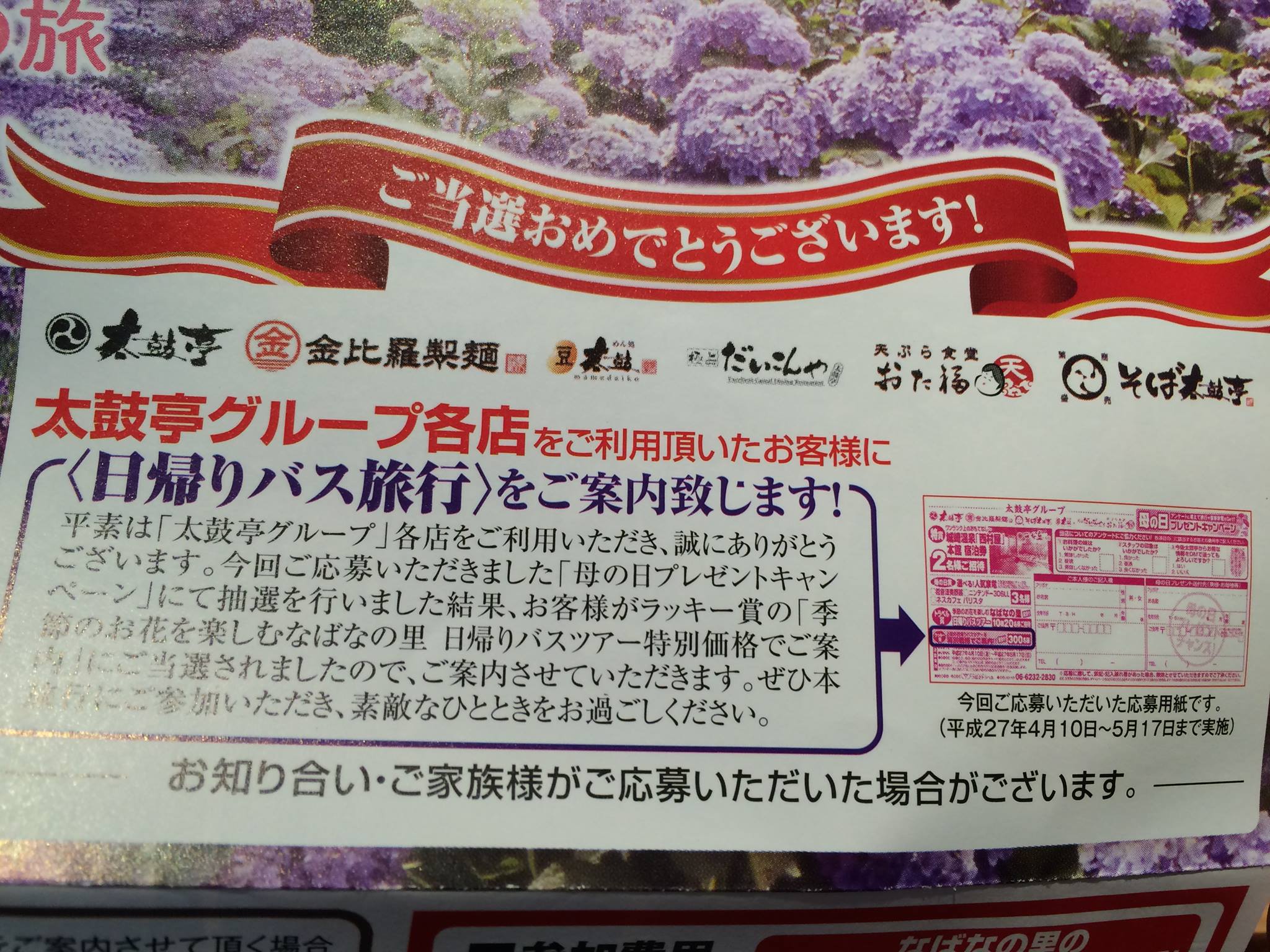 日帰りバス旅行が当選!!