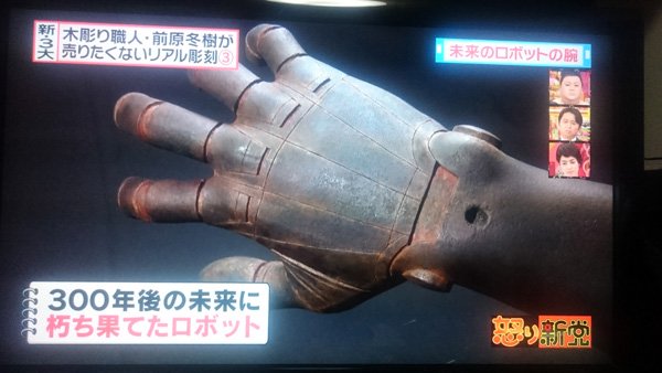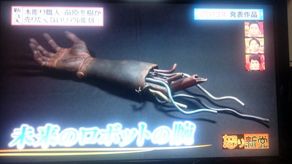 ホーム > つれづれ > 彫刻家前原冬樹さんがすっごい! 2015/07/09 木彫職人の前原さんが【マツコ&有吉の怒り新党】に出られていてその作品にびっくり! これが全部木彫 2012年発表作品『非常階段に折り鶴』 鉄の錆びた感じが木から。 2013年発表作品『未来のロボットの腕』 木彫は失敗したら終わりだからすごい集中力がいると。 - つれづれ Tweet Please enable JavaScript to view the comments powered by Google+. Loading Facebook Comments ... Please enable JavaScript to view the comments powered by Facebook. Message コメントをキャンセルメールアドレスが公開されることはありません。 ※ が付いている欄は必須項目ですコメント ※ 名前 ※ メール ※ サイト Δ このサイトはスパムを低減するために Akismet を使っています。コメントデータの処理方法の詳細はこちらをご覧ください。 関連記事 お金渡されてね。 今年は天気がいいじゃないか! 魔を滅する ホンダ【フリード】フルモデルチェンジ いいなと思った! ニトリの冬用ラグ みなと整体院のウラにモツ鍋【東屋】さんOPEN 本日で仕事納めでした!有難うございましたm(_ _)m PREV 新型シエンタは明日7月9日発表? NEXT アベンジャーズ
