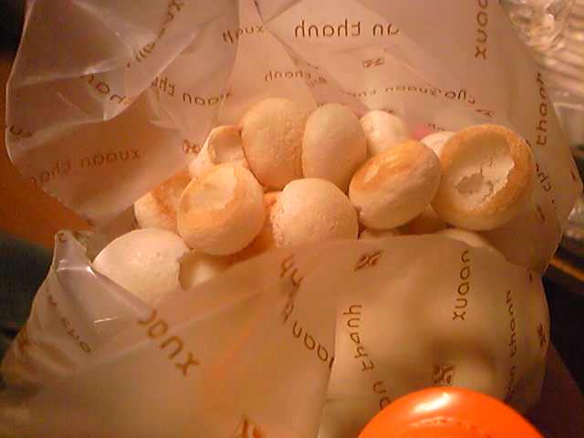 ホーム > いただき物☆ > ベトナムからコンニチワ 2011/04/13 Kさんからベトナムのお土産をいただきました。写真のクッキーのようなものとチョコもいただいたんですが、すぐに食してしまったため写真はなしということで。開けてびっくり、パッケージと中身があまりにも違いますけど(笑) さすがベトナム(^。^) いや、でも味は抜群においしかったんです。メレンゲをカリッと焼き上げた感じでした。イメージ的にはベビーボーロ Kさんありがとうございました<(_ _)> - いただき物☆ Tweet 関連記事 世の中チョコレート コッペパン専門店「ゆうきぱん」さん@高槻 うまいもの大会 シューアイス!! FUJIテレビ 薩摩は鹿児島のお土産 有馬・炭酸せんべい 鳥取おみやげ PREV 楽天を応援することに NEXT スカ●プからシャンプー事情