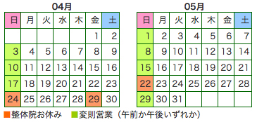 ホーム > 連絡事項 > ゴールデンウィーク営業日のお知らせです 2011/04/26 ゴールデンウィークは営業しています。 カレンダーをご確認くださいね。 29日だけ結婚式のためお休みいただきます。 あっという間にゴールデンウィークですね。 あれからもう一年か・・・はや〜〜〜〜(@_@;) - 連絡事項 Tweet 関連記事 【みなと整体院】明日は研修のためお休みです。 6日、7日はお休みです!! 8月の営業案内 明日11月3日は【みなと整体院】は営業しています。 明日11/3(祝)は営業しております。 7/23・24・25日は営業します! 2024年09月の【みなと整体院】営業案内です。 11/23(祝)は営業しております。 PREV 正しい情報が必要 NEXT DREAMS COME TRUE