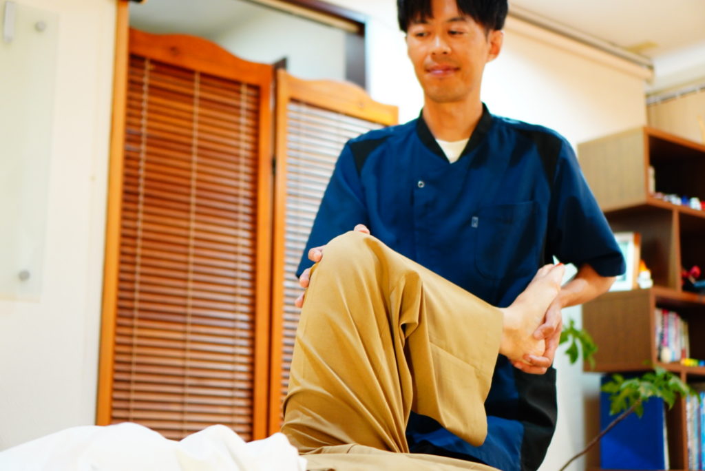 膝だけをいじるのではなく、上下の関節を整えて、膝にかかる負担を分散させます。