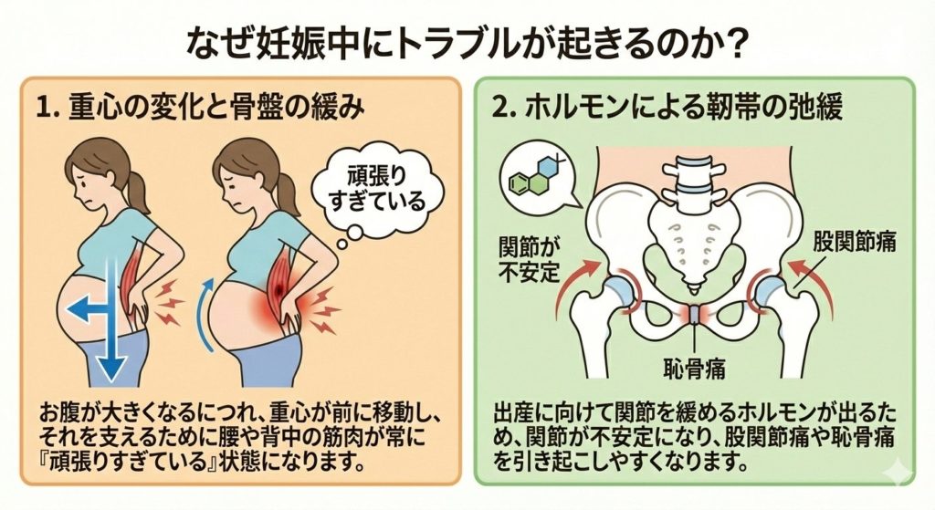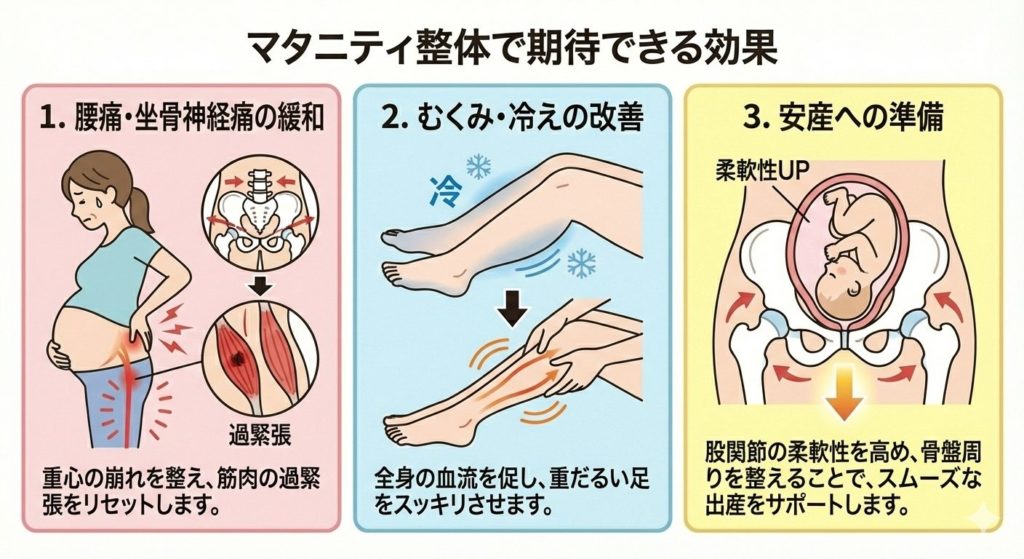 - 国家資格者による「安心・安全」な施術=産前のデリケートな時期だからこそ、解剖学を熟知したプロが対応します。